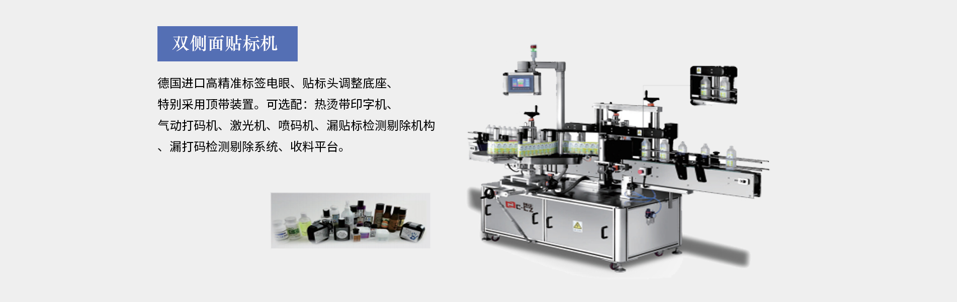 本公司生產的口服液貼標機適合細長形圓柱體瓶圓周表面的不干膠標簽自動貼標,口服液瓶等,采用彩色人機界面,離合器設計,使標簽張緊力更加穩定,便于提高貼標精度3、西門子PLC控制,德國、日本光眼,高精度步進,貼標速度可達30米/分鐘,可加裝色帶打碼機、或者熱轉印機。口服液貼標機多為圓瓶貼標機適用于瓶身長,直徑的產品(玻璃塑料都可以,材質不限),同時可加工粉針劑瓶、采血管、水針劑瓶、眼藥水瓶、圓管等,專門針對...